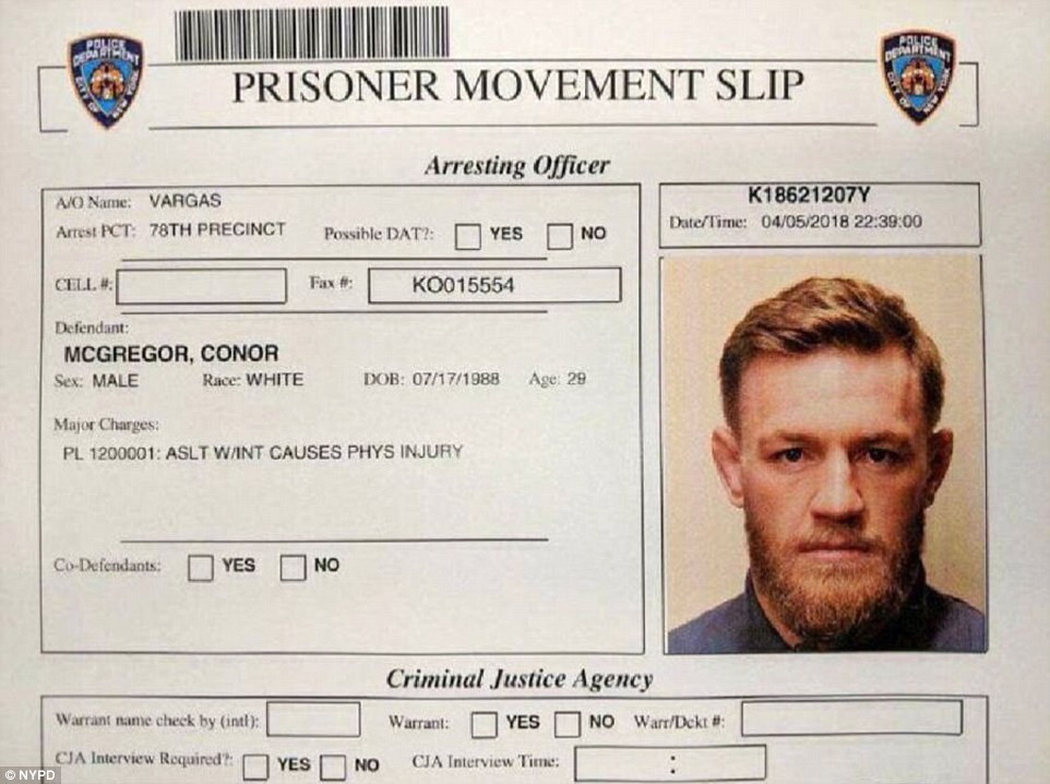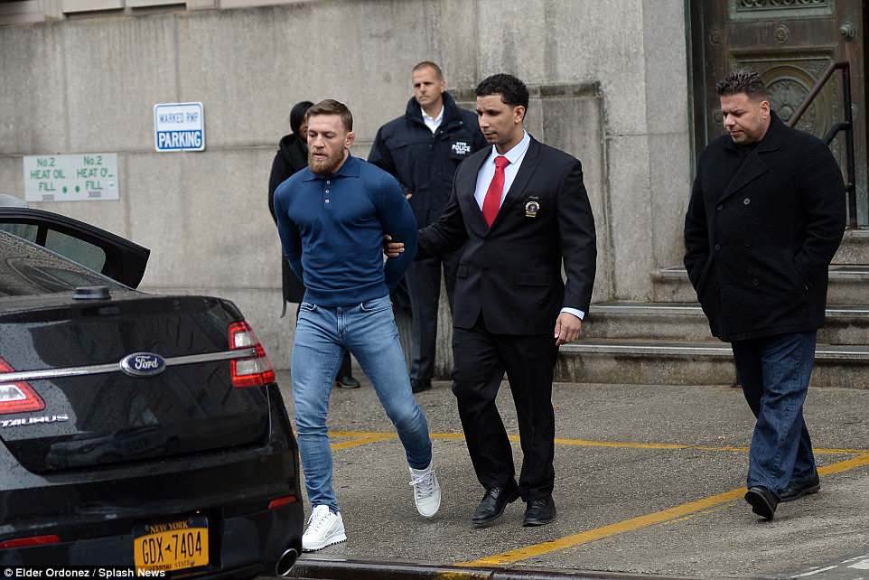 Kampioni irlandez u dorëzua mbrëmë vonë në policinë e New York, sepse në konferencën për shtyp goditi me mjete të forta autobusin në të cilin udhëtonin sportistët kundërshtarë.