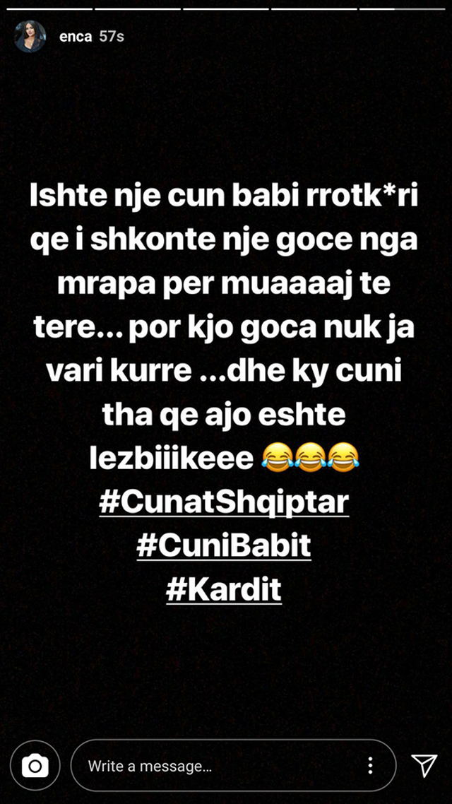 Dikush e paska mërzitur keq fare Encën ditën e sotme, sa e ka detyruar të bëjë një story dhe madje t’i vërë një epitet.