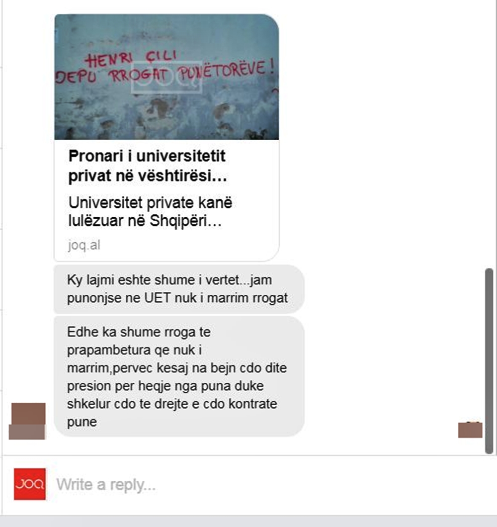 Në kontaktim për JOQ.al njëri nga punonjësit e këtij universiteti shprehet: