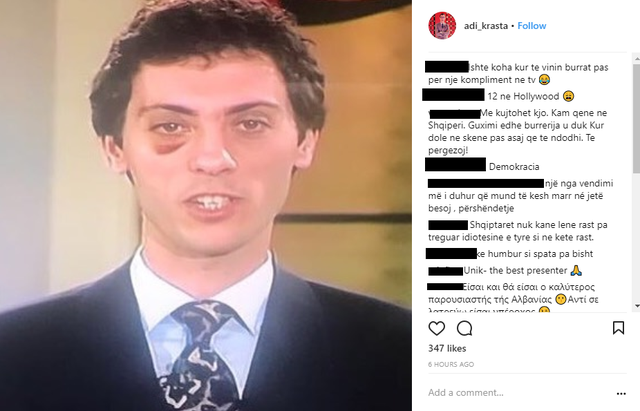 Ai ka postuar një foto me sy të nxirë, foto që daton në vitet ’90. Sipas mediave në atë kohë, Krasta kishte komplimentuar një vajzë nga publiku gjatë kohës kur ai drejtonte spektaklin "12 vallëzime pa një të shtunë".