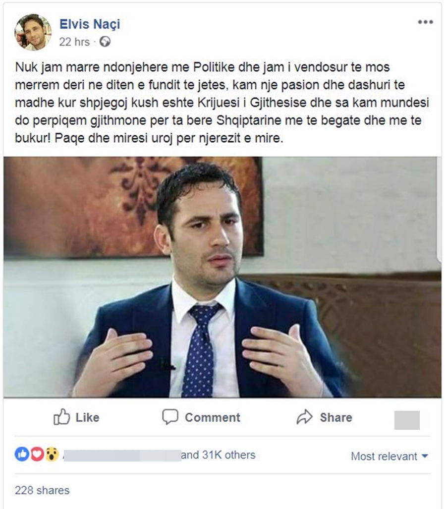 Dihet që politika dhe feja janë në kahe të kundërta më njëra-tjetrën për mënyrën se si veprojnë dhe ndoshta ky distancim i imam Naçit është më se i duhuri.