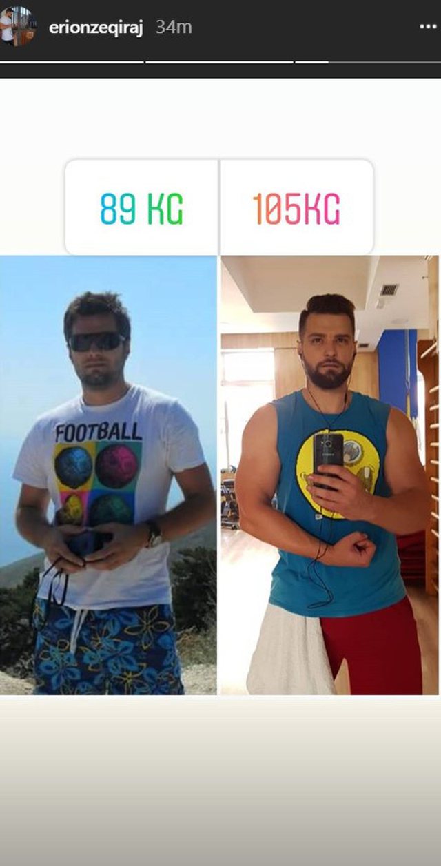 Kjo është pesha ideale për Erionin i cili është rreth 1.90 i gjatë dhe së fundmi ka vënë muskuj, çka me siguri i ka sjellë edhe shumë ndjekëse femra në rrjetet sociale.