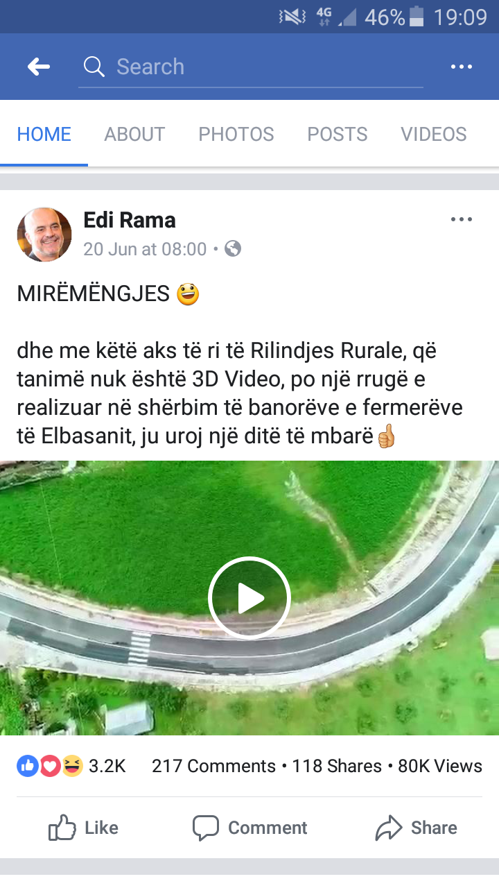 Përshëndetje JOQ! Doja t’ju tregoja se në çfarë gjendjeje është tani rruga në fshatin Tregan të Elbasanit, e cila as tre muaj nuk i ka që është përuruar. Kur rruga përfundoi Rama erdhi dhe i boni video me dron, të cilën e ka postuar edhe në faqen e tij.”