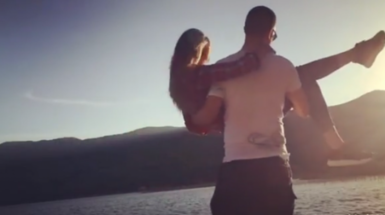 Mediat kanë siguruar disa video ku ish-banori i “Big Brother” është ngjitur në skenë dhe para qindra njerëzve i është ulur në gjunjë Teas duke i propozuar për martesë.