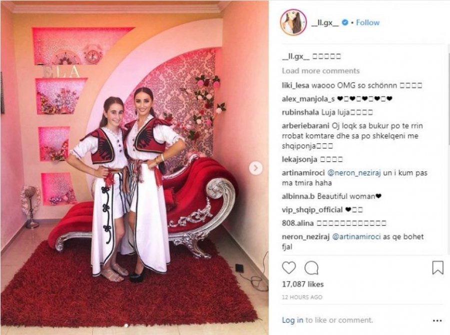 Në imazhet e fundit të publikuara në Instagram, Leonita shfaqet me veshje tradicionale kur edhe bën shqiponjën.