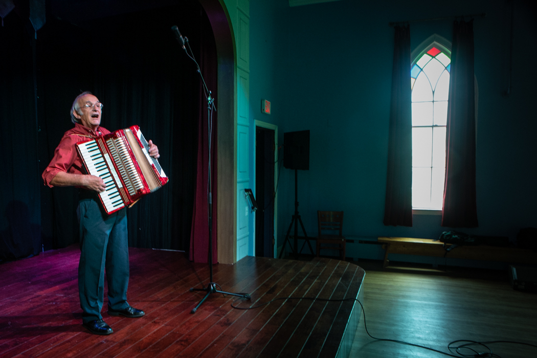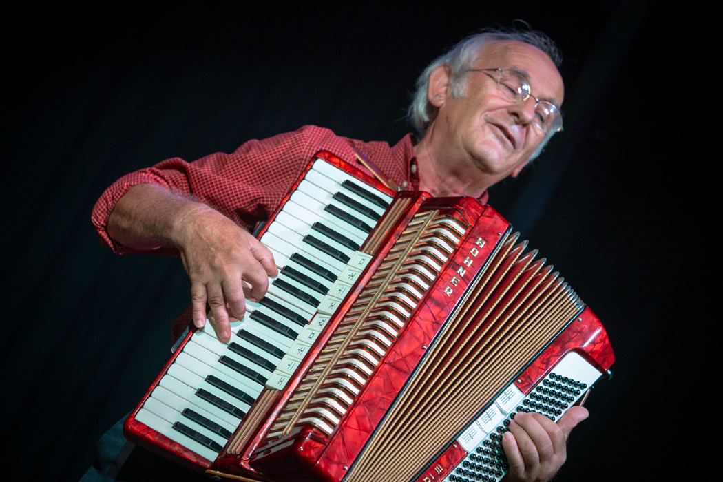 I moshuari mori valixhen dhe nxori një firzamonikë të madhe të kuqe, më pas vuri shiritat në shpatulla. Në fillim, ai ishte i pasigurt. Kishte kohë që nuk i binte më veglës muzikore. Pastaj, ai i dha një të shtypur, gishtat e tij kërcenin mbi çelësat e bardhë dhe në atë moment 50 vjet muzikë u rikthyen tek ai.