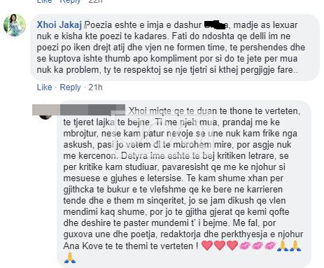 Në reagimin e saj Xhoi i përgjigjet një prej kritikeve: