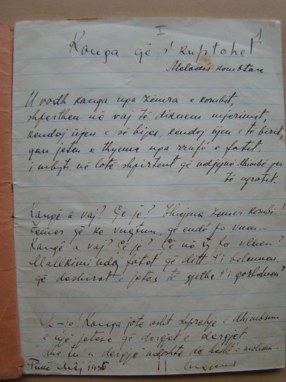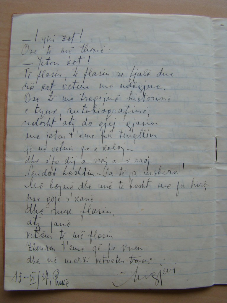 Nga fondi dokumentar i Migjenit që ruhet në Arkivin Qendror të Shtetit, sjellim për ta përkujtuar me lexuesit tanë tre poezi të tij nga me dorëshkrimet e origjinale.