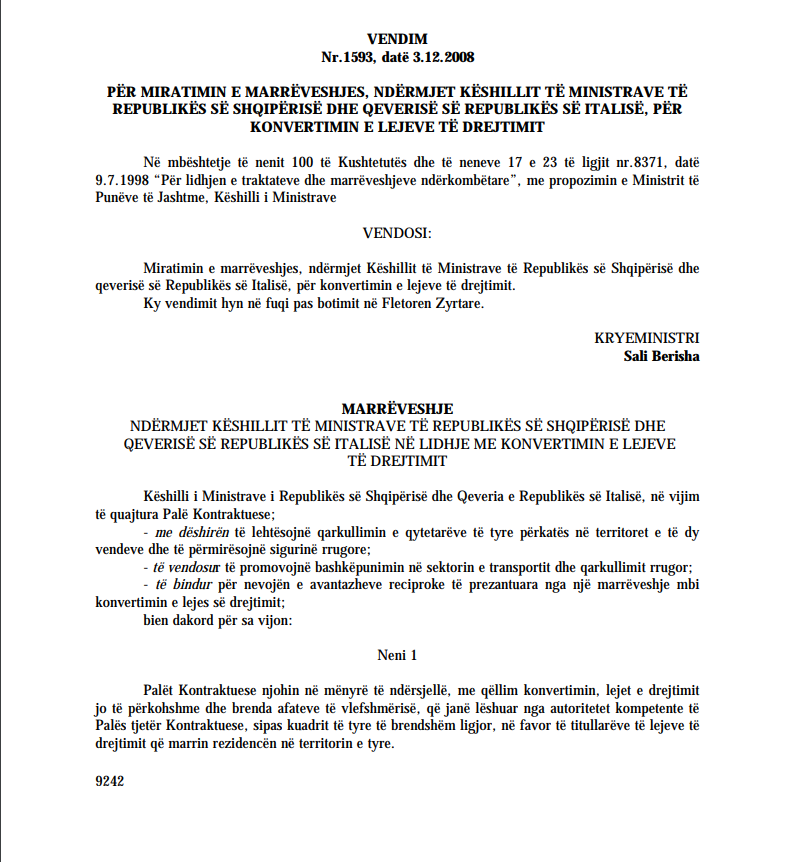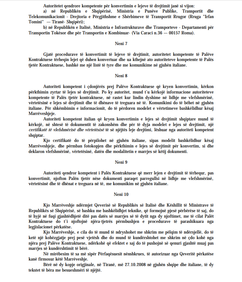 Bëhet në rast kthimi nga shqip në italisht. Por motorizzazione tha se nuk i njeh më patentat shqiptare.