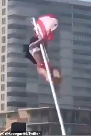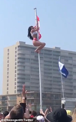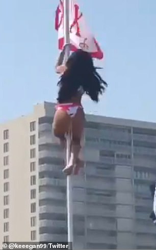 Pamjet në të cilat, Haylee Hoefgen është filmuar ndërsa ngjitej për të kapur flamurin me bikini tashmë janë bërë virale në rrjet.
