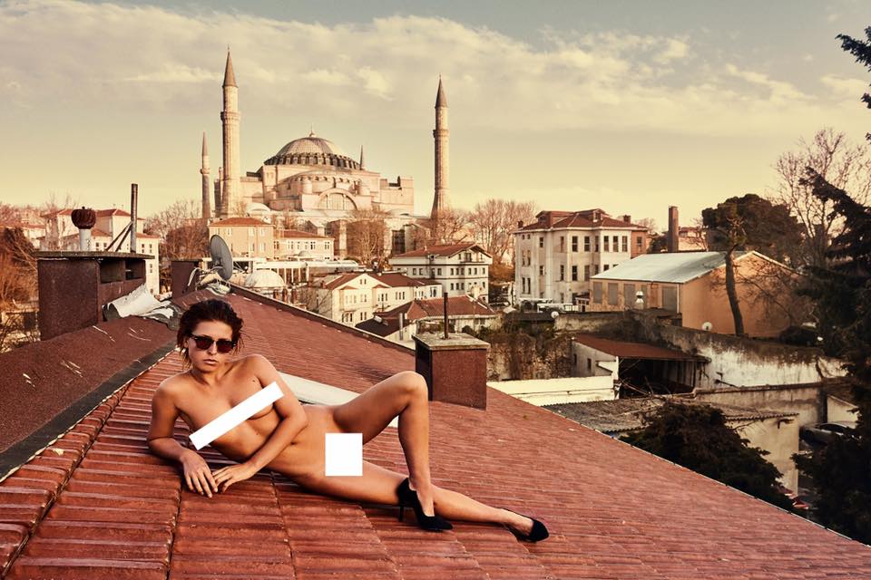 Para disa muajsh, vizitoi Hagia Sophia, një xhami osmane në Turqi që është kthyer në muze, por për pothuajse 1000 vjet ishte kisha më e madhe e krishterë ortodokse greke në botë. Modelja belge qëndroi para Hagia Sophia me një burkë por më pas ngriti skajin e saj dhe doli nudo, gjë që zemëroi myslimanët në të gjithë botën.