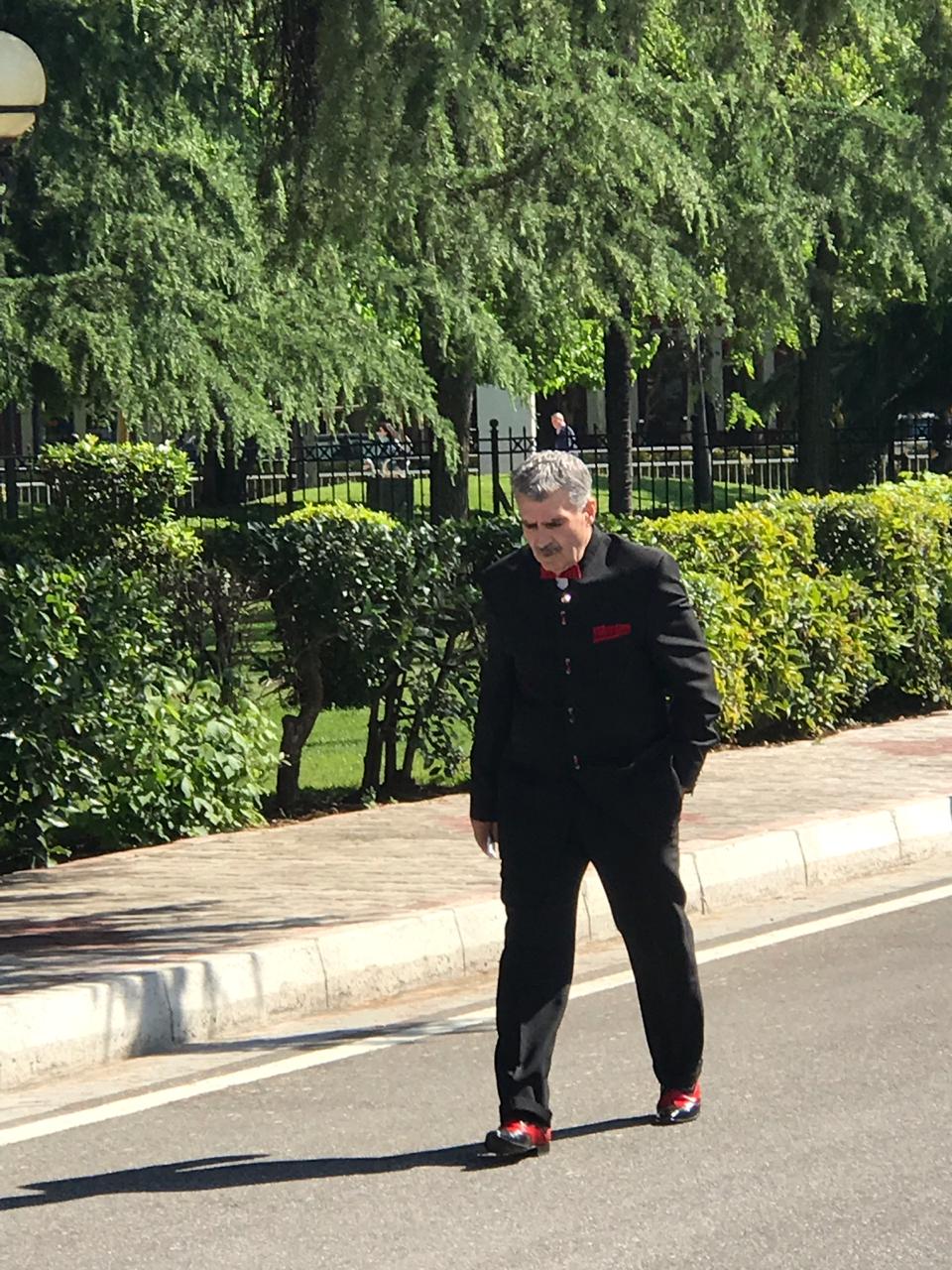 Jo vetëm që ka tërhequr vëmendjen me veshjen e tij të pazakontë, papionin e kuq që e kishte kombinuar me këpucët në të njëjtën ngjyrë, por edhe me ato që ka thënë ën momentin që është betuar.