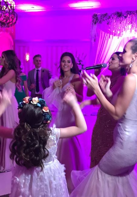Në këtë dasmë janë luajtur edhe këngë popullore shqiptare. Afërdita së bashku me motrën e saj mbante veshur një fustan rozë pastel, pas trupit.