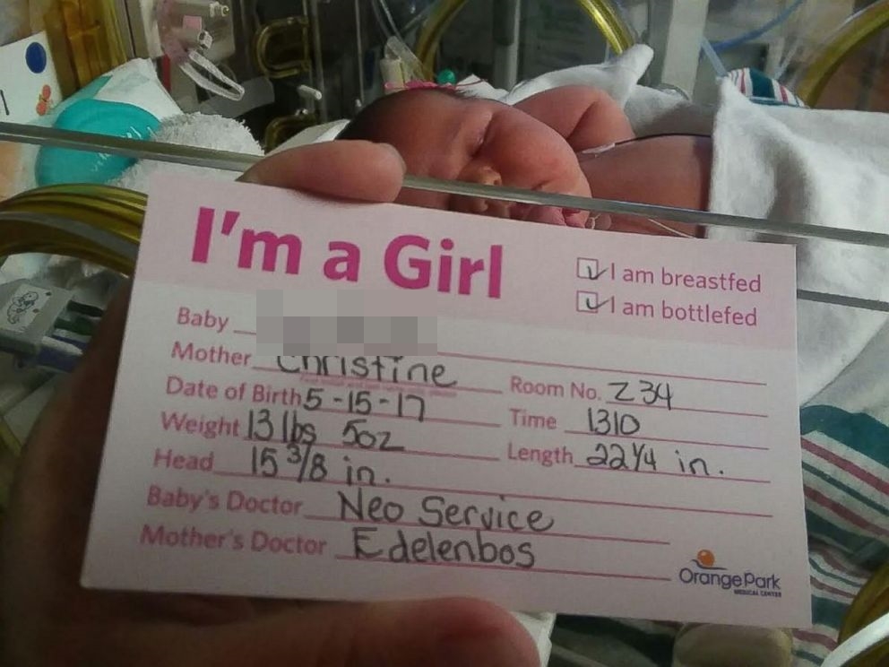 Vajza, me peshë aspak normale për moshën që ka, erdhi në jetë më 15 maj në ‘Orange Park Medical Center’.