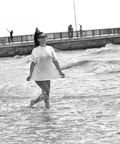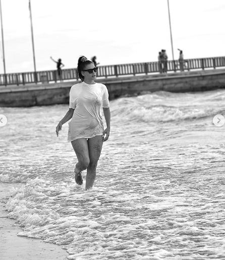 Së fundmi ajo ka publikuar disa foto, ku shfaqet buzë detit vetëm me një buzë dhe pa të brendshme.