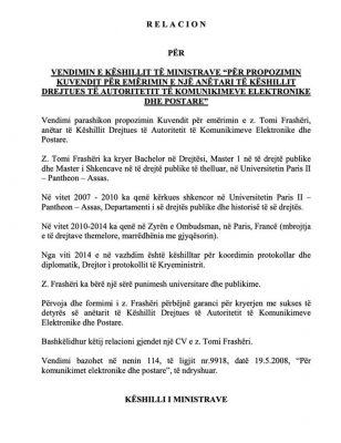 Jo më kot sot u emërua në krye të AKEP, Tomas Frashëri, i cili më parë ka mbajtur postin e Shefit të Prokollit të kryeministrit Rama, pas dorëheqjes së Ilir Zelës.