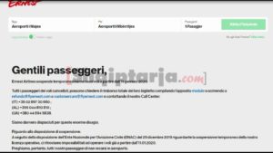 Por “Fly Ernest”-it, e mbytur në borxhe dhe parregullsi, i është pezulluar licenca nga Autoriteti Italian i Aviacionit Civil më 29 dhjetor dhe nga 11 janari ka ndërprerë të gjitha fluturimet duke përfshirë edhe ato të Shqipërisë, e duke krijuar panik tek mijëra qytetarë.