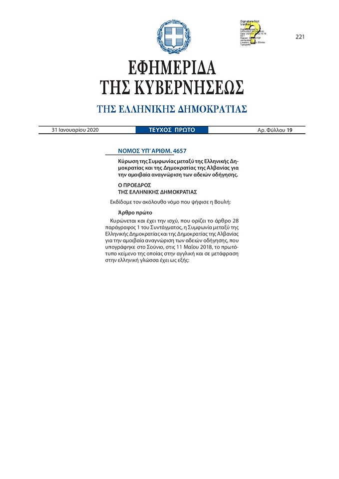 Njohja e patentave shqiptare në Greqi kishte kohë që pritej dhe kjo ka ndodhur. Televizoni “Tribuna” në Greqi ka bërë publik dokumentin, ku shkruhet se patentat shqiptare njihen në Greqi.
