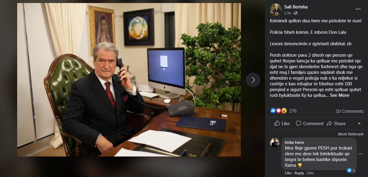 Një denoncim i rëndë është bërë në adresën e ish-Kryeministrit Sali Berisha, ku tregohet se një plagosje me armë është mbajtur e fshehtë nga policia e Elbasanit. Sipas shkrimit të Berishës, një kriminel ka goditur disa herë me pistoletë një djalë të ri.