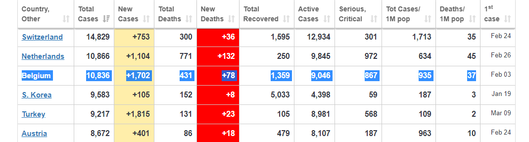 Ka shkuar në 431 numri total i viktimave nga koronavirusi në Belgjikë.