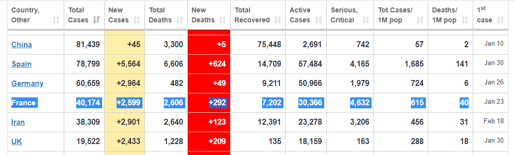 Në total, në Francë janë 30,366 raste aktive me koronavirus.
