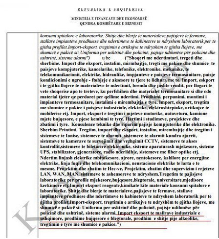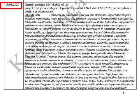 Në bazë të të dhënave zyrtare, kompania “Eurovia”, e specializuar në pajisje kompjuterike, vetëm 6 ditë para tenderit pa garë, modifikoi objektin e saj, duke shtuar edhe angazhimin në produktet ushqimore.