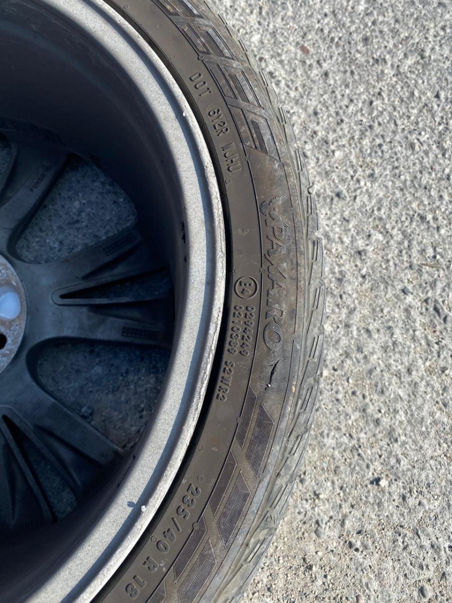 Në fotot e qytetarit tregohen qartë gomat që autoveturës që janë çarë dhe kanë pësuar deformime serioze në disqe.