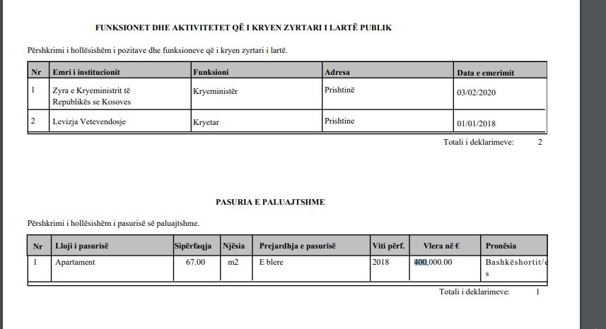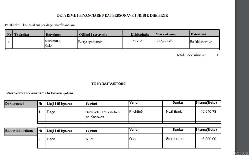 Bazuar në deklarimin e pasurisë, në AKK, ajo paguhet 46 mijë e 990 euro në vit. Gruaja e Kurtit ka blerë banesë në Oslo të Norvegjisë në nlerë prej 400 mijë euro.