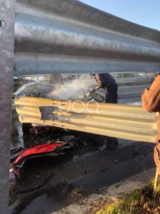 Pak më parë, një aksident i rëndë u rregjistrua në Laç, pranë kryqëzimit të autostradës Milot-Mamurras. Një automjet i tipit “Audi R8” është përfshirë nga flakët, pasi është përplasur me bordurën metalike, si pasojë e humbjes së kontrollin nga shpejtësia. Sipas burimeve të “Dosja.al” në makinë mund të ketë viktima të cilët nuk kanë mundur që të dalin nga automjeti. Aktualisht në vendngjarje kanë mbërritur forcat e policisë dhe zjarrëfikësja, të cilët po mundohen të vendosin situatën nën kontroll. Pranë redaksisë së JOQ ALBANIA janë dërguar disa fotografi, të cilat ilustrohen në vijim, ku duken qartë pamjet nga aksidenti i rëndë.