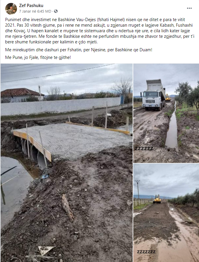 Ndërkohë fotoja më poshtë tregon postimin që ka bërë administratori i komunës Zef Pashuku dy ditë më parë.
