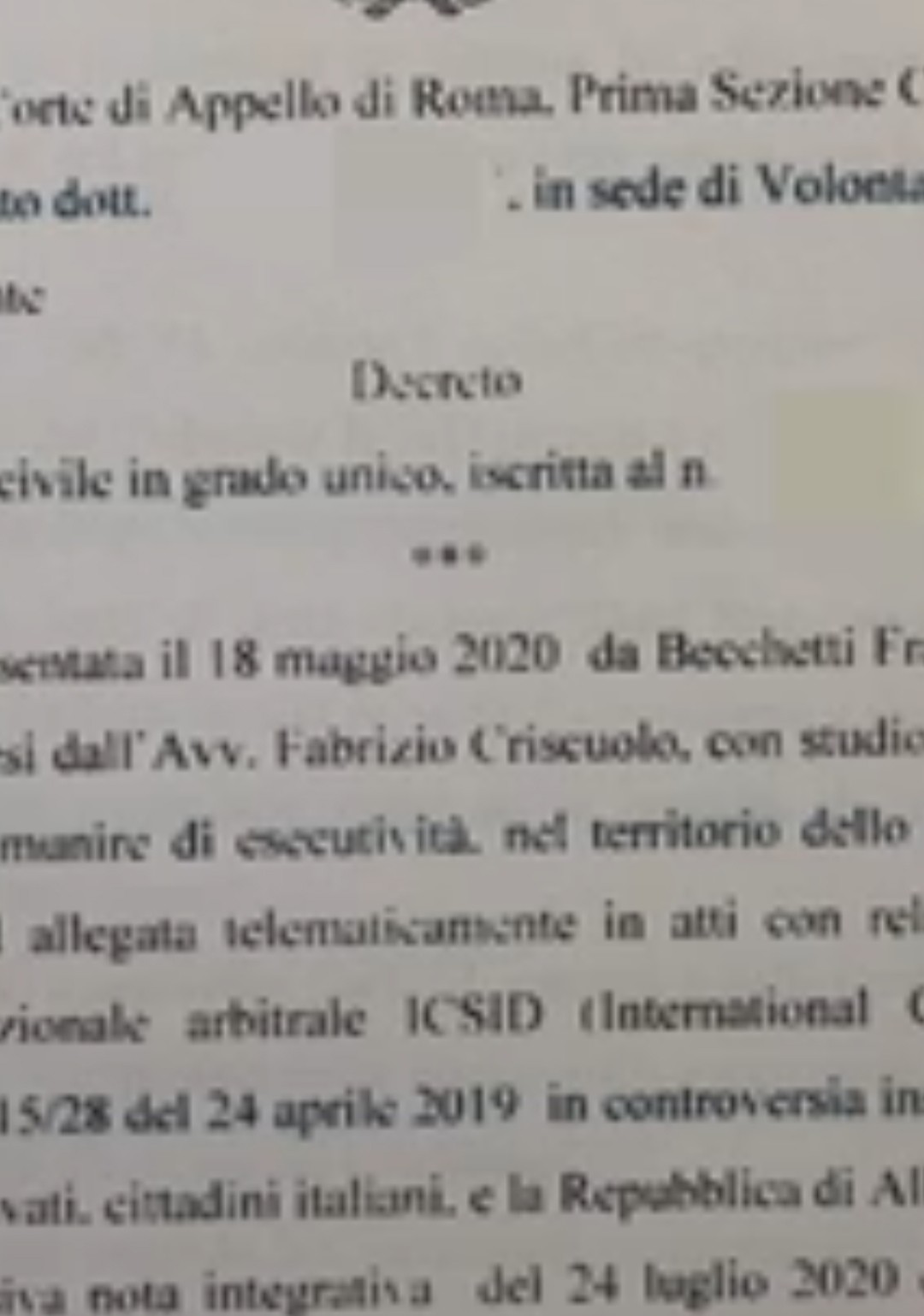 Vendimi i gjykatës në Romë për çështjen Becheti