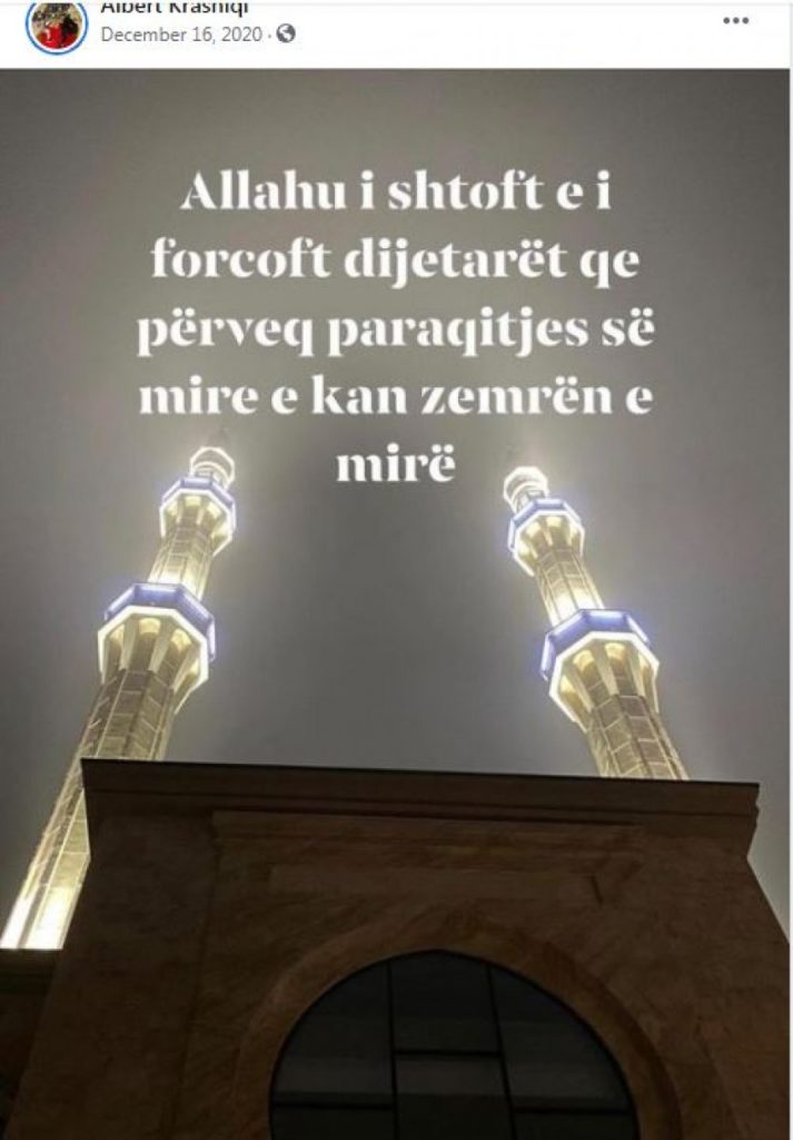 Kosova, dhe jo vetëm, u trondit nga një ngjarje e rëndë para dy ditësh, ku Skënder Krasniqi 'eliminoi' djalin e tij Albert Krasniqi. Siç u raportua në mediat kosovare, ata patën një konflikt me njëri-tjetrin dhe më pas sherri degjeneroi në të shtëna armësh. Theksojmë se Albert Krasniqi ishte i njohur për organet e drejtësisë, ndërsa Skënder Krasniqi ka qenë pjesë e UÇK-së. Por nga ana tjetër burimet bëjnë me dije se më parë marrëdhëniet mes tyre ishin shumë të mira. Madje të dy bashkë, me kompaninë e tyre të ndërtimit ‘Përparimi’ kishin kontribuuar për ndërtimin e një xhamie tek “Mati 1”, raportojnë mediat kosovare. Gjithashtu ata kishin publikuar edhe disa foto nga xhamia bashkë me imamin e saj.