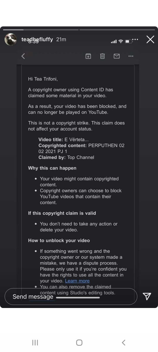 Ndërkohë që mbrëmjen e sotme Tea ka zbuluar se faqja e saj e Instagramit është mbyllur. Në një faqe të dytë që ajo mban ajo ka publikuar një mesazh për videon që publikoi në Youtube për të treguar të vërtetën e lidhjes së saj me Beartin. Pasi videoja është bllokuar dhe fshirë, e njëjta gjë ka ndodhur edhe me “Instagram”-in e Teas. Tea ka shkruar se pas videos në YouTube tani i është mbyllur dhe Instagrami. Siç duket ajo nuk po e kupton se çfarë po ndodh me llogaritë e saj dhe pse duhej t’i mbyllej faqja në Instagram.