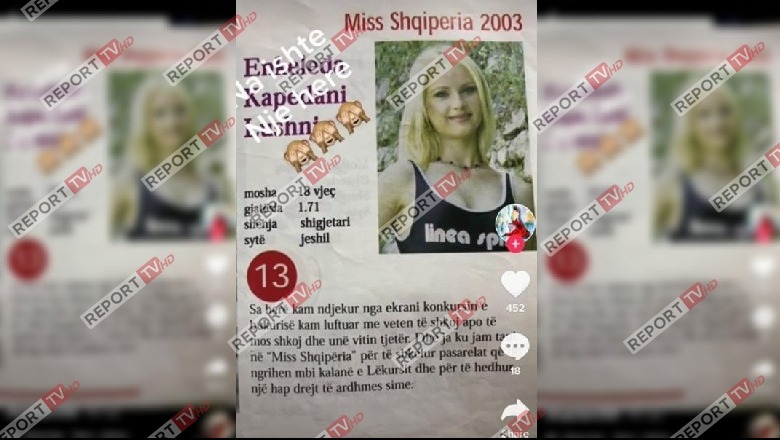 Ajo ka hedhur një foto në TikTok, me anë të së cilës kujtonte kohën kur merrte pjesë në Miss Shqipëria 2003. Por më pas aja e ka fshirë këtë profil. “Sa herë kam ndjekur nga ekrani konkursin e bukurisë kam luftuar me veten të shkoj apo të mos shkoj dhe unë vitin tjetër. Dhe ja ku jam tani në Mss Shqipëria për të shkelur pasarelat që ngrihen mbi kalanë e Lëkursit dhe për të hedhur një hap drejt të ardhmes sime”- shkruan Kapedani në kartolinën e konkurrimit në Miss Shqipëria.