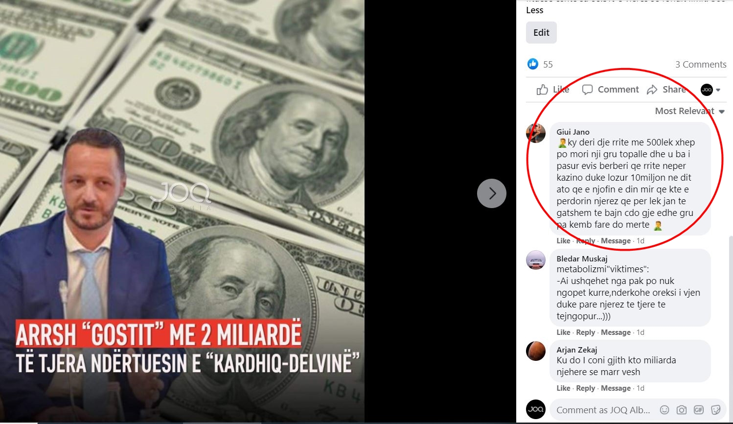Ashtu siç raportohet edhe për burime nga JOQ, edhe duke cilësuar atë që thamë më lart, njëri vidhte me tenderat e tjetri tashmë do i bëjë ato rrush e kumbulla në kumar. Në sqarim të audiencës, një ndjekës i JOQ ka shpjeguar jetën e Berberit, se si ato që fitonte i linte në kumar. “Nga me 500 lek n xhep, rrinte neper kazino duke lozur 10 milion në ditë, ato qe e njofin e dine mire qe kte e perdorin njerez qe per lek jan te gatshem te bajn cdo gje”-shprehet komentuesi.