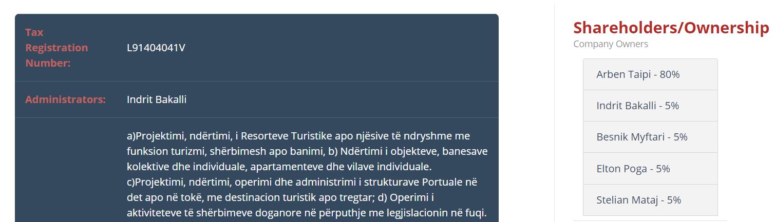 Nëse do i hedhim një sy kompanisë që do betonizojë bregdetin shqiptar dhe do e kthejë atë në një resort oligarkësh, ku do të mund të hyjnë e të banojnë të privilegjuarit e pushtetit, do të shikojmë se përbëhet nga disa aksionerë.