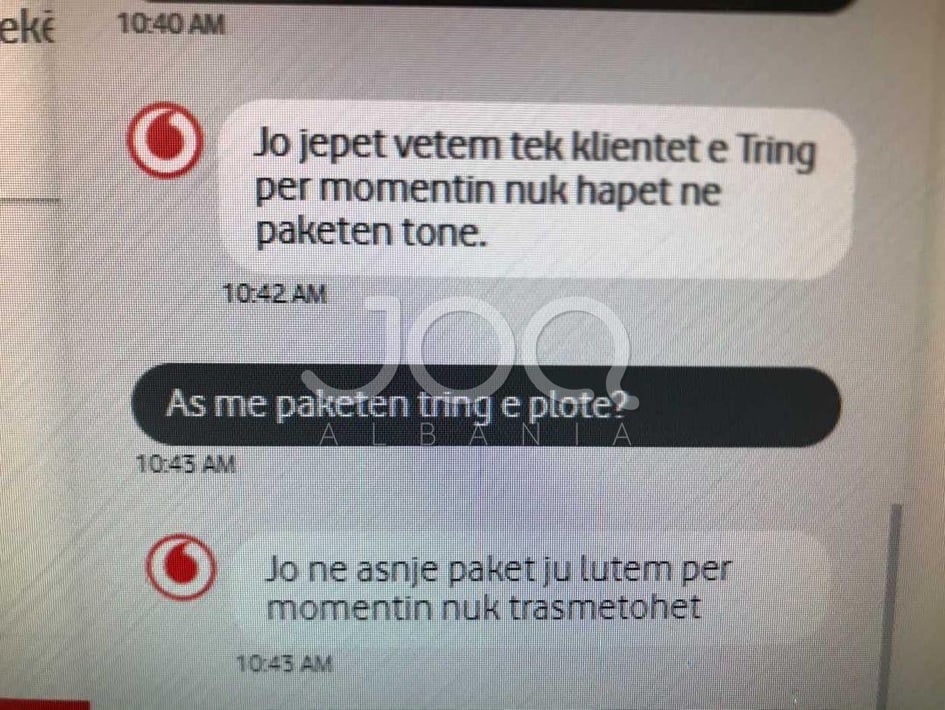Vodafone vijon të zhvasë shqiptarët, të cilët vazhdojnë t’i besojnë ende edhe pas shumë e shumë skandaleve nga kjo kompani. Rastet, kur kompania Vodafone, mundohet të përfitojë sa më shumë prej xhepave të shqiptarëve sa vijnë dhe shtohen e situata bëhet edhe më alarmante. Një qytetar ka shkruar në redaksinë e JOQ ALBANIA dhe ka treguar për "bëmat" më të reja të kësaj kompanie që s'di të ngopet.