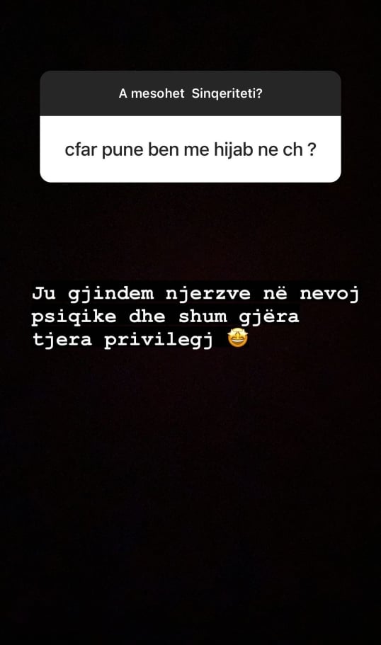 Ajo ndan copëza në rrjetet sociale nga përditshmëria e saj si e përkushtuar ndaj fesë. E nganjëherë, ndjekësve ua jep mundësinë që ta pyesin rreth jetës së saj.