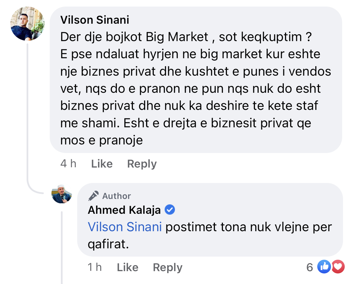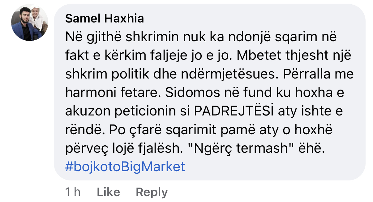 GJUHA E URRJETJES QË PËRDOR KALAJA NDAJ BESIMTARËVE MYSLIMANË QË KRITIKOJNË BIG MARKET