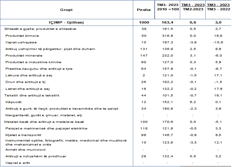 Ndërsa në tremujorin e tretë të 2023, krahasuar me tremujorin e tretë të vitit 2022, çmimet janë ngritur për 3,0 për qind.