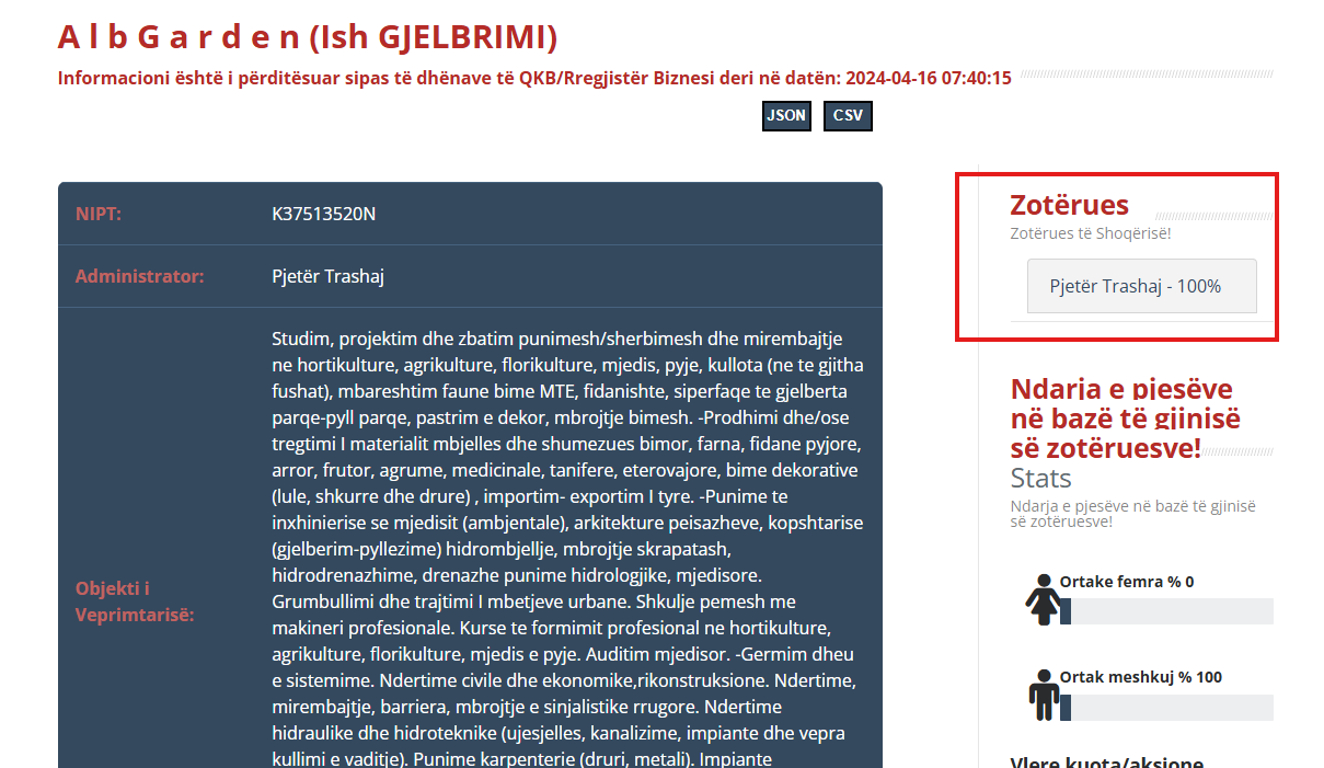 Rasti bëhet edhe më problematik për shkak të profilit të kompanisë fituese. Kompania e Pjetër Trashajt përmendet shpesh si një nga përfitueset e mëdha të tenderëve publikë, duke arkëtuar qindra mijëra euro për lule dhe gjelbërim. Në të shkuarën, ajo ka qenë në qendër të kritikave dhe akuzave, përfshirë raste ku djali i Pjetër Trashajt, ish-punonjës në Ministrinë e Mjedisit, ka firmosur tendera ku përfituese rezultonte kompania e të atit. Gjithashtu, Pjetër Trashaj është përmendur edhe si përfitues fondesh nga AZHBR.