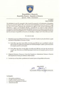 Me këtë vendim: Obligohen Ministria e Financave, Punës dhe Transfereve, Administrata Tatimore e Kosovës dhe Inspektorati i Punës për zbatimin e tij.