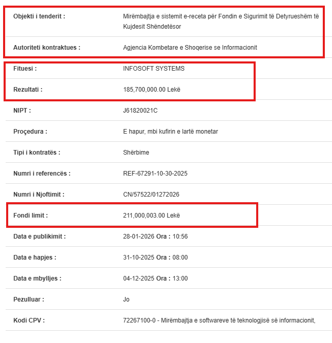 Ndërkohë që shqiptarët përballen me mungesën e barnave, në zyrat e AKSHI-t të cilat tashmë drejtohen me "telekomandë" nga Mirlinda Karçanaj në arrest shtëpie, recetat e sukseseve financiare shkruhen me shumë zero. "Pacienti" i radhës që po përfiton nga bujaria e shtetit është kompania Infosoft Systems, e cila sapo ka "kullufitur" një tender plot 2.3 milionë euro për mirëmbajtjen e sistemit e-receta.