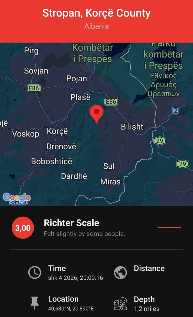 Deri në këto momente nuk raportohen dëme materiale apo persona të lënduar, ndërsa pritet një komunikatë zyrtare nga stacioni sizmiologjik i Korçës për më shumë detaje.
