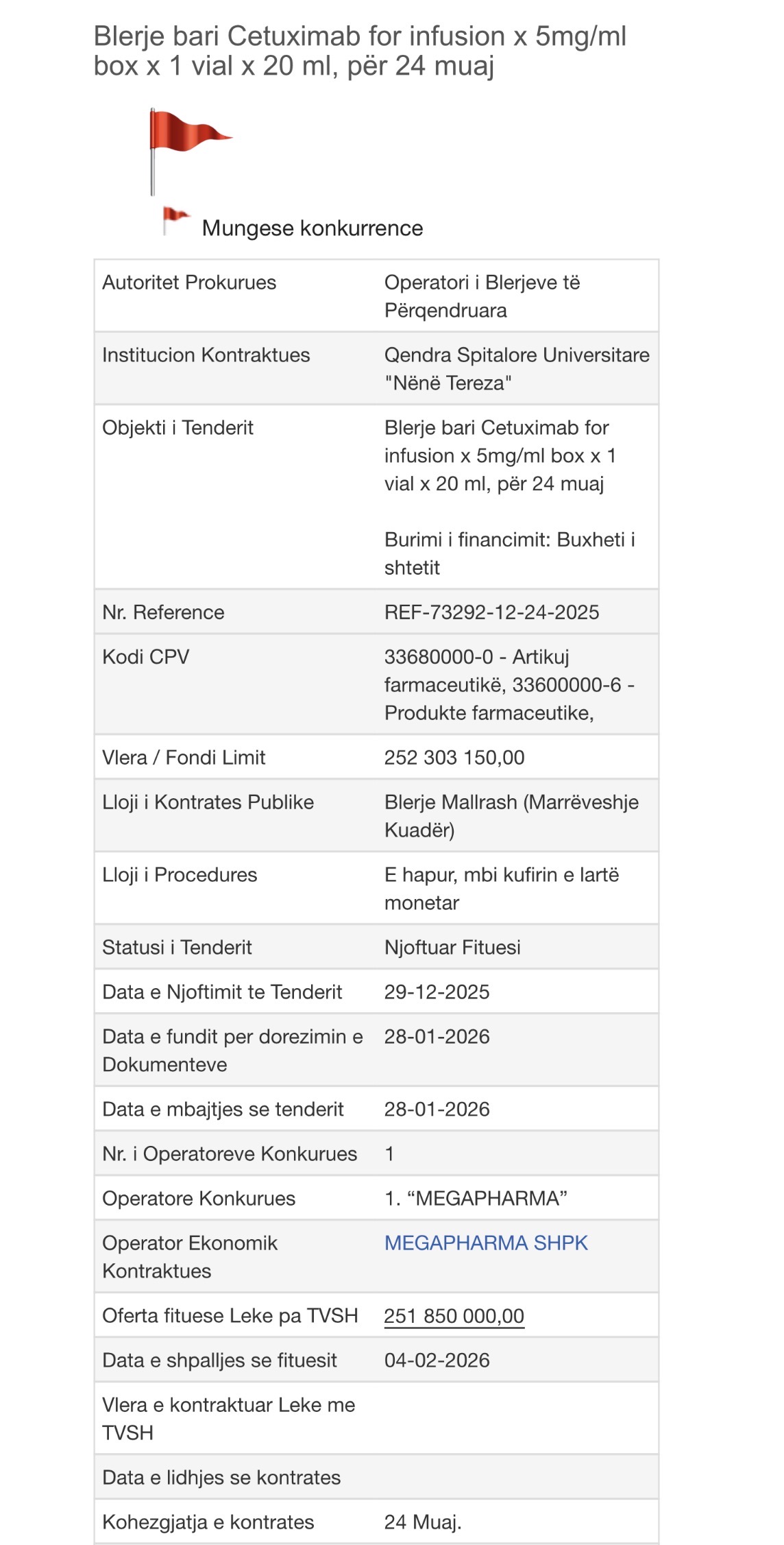 Për Janis Karathanos me perandorinë e tij "Megapharma", rruga është shtruar me tapet të kuq (pavarësisht se tenderi është i shënuar me flamur të kuq për mungesë konkurrence), për përvetësimin e parave publike në shkelje të ligjit, ndërkohë që oligarku i koncesionit të laboratorëve është nën hetim nga SPAK.