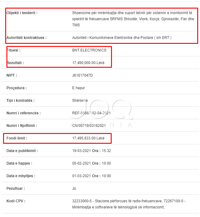 Sot do të kujtojmë një denoncim të bërë më 22 mars 2021, që ngre ende pikëpyetje serioze mbi mënyrën e menaxhimit të fondeve publike nga Autoriteti i Komunikimeve Elektronike dhe Postare, ku në atë kohë drejtues ka qenë Tomi Frashëri. Bëhet fjalë për tenderin me numër reference REF-85887-02-04-2021, me objekt mirëmbajtjen dhe suportin teknik të sistemit të monitorimit të spektrit të frekuencave SRFMS në qytete si Shkodër, Vlorë, Korçë, Gjirokastër dhe Fier një projekt me rëndësi për kontrollin e infrastrukturës së komunikimeve elektronike në vend.