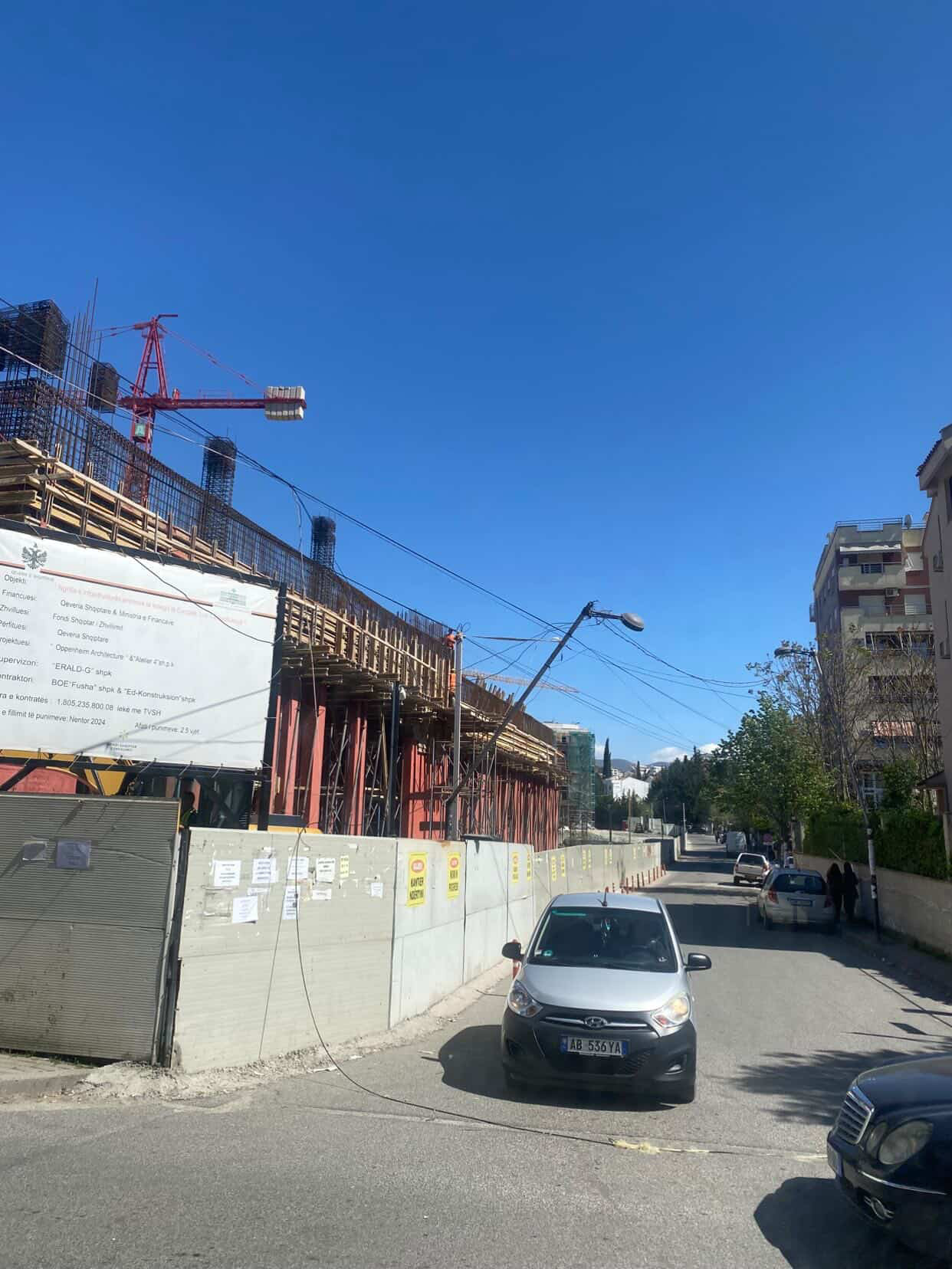 Në kantierin e ndërtimit pranë fakultetit Ekonomik në Tiranë, një eskavator ka dëmtuar dhe këputur kabujt elektrikë, të cilët tani ndodhen tërësisht në mes të rrugës.